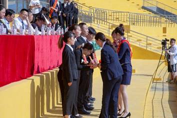 在庄严的国歌声中,毕业典礼拉开帷幕。