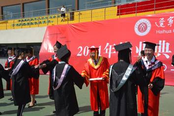 同学们!又是一年毕业季,又是学成启航时。在庆祝中国共产党成立100周年华诞之际,你们开始了人生新征程。不忘初心,牢记使命,愿你们在不同岗位上书写新的人生篇章,成为一个个海华故事的讲述者和一张张生动的海华名片。从今以后,你代表海华,海华也以你为荣。