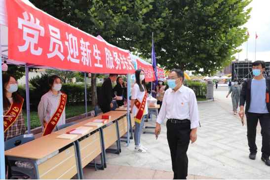 9月7日上午,校领导谷春祥、傅庭麟、赵春利、张猛、曲雪芹、田焱和王树海等来到迎新报到处检查指导各项工作,重点询问了新生的报到情况,对各院系、各部门迎新工作人员进行了慰问,并与同学们进行了亲切交流。