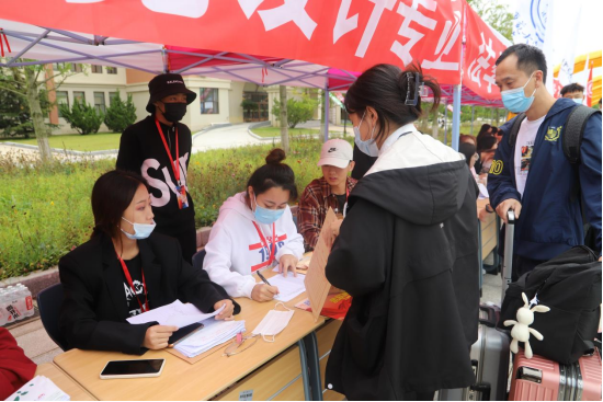 由于当前疫情防控形势依然严峻复杂,学校坚持简化报道手续,进行精细化管理。学校在庄河北站设立新生入学接站点,安排专车接站到校。新生在完成健康码、核酸检测结果、行程卡查验,测量体温、行李消杀等流程后,分别到各院系报到点正式办理报到手续。外省区新生另需做核酸采样。新生报到工作中,相关工作人员、学生志愿者始终以满腔的热情、饱满的精神状态,细致周到地为新生服务,参与本次迎新志愿服务活动的志愿者600余人次。