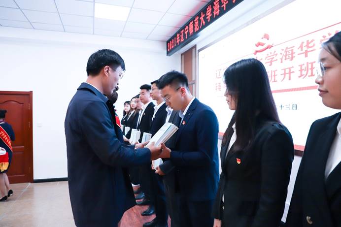 仪式一开始,由张猛副书记为各院系辅导员代表赠送2本理论读物即《习近平总书记教育重要论述讲义》《深入学习习近平关于教育的重要论述》和1本《辅导员工作手册》。为明确辅导员岗位职责、规范辅导员队伍建设制度,学生处组织编印了《辅导员工作手册》,进一步明确了辅导员应遵守的12项工作制度和11项日常工作要求。