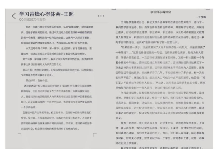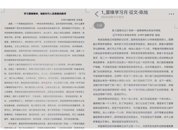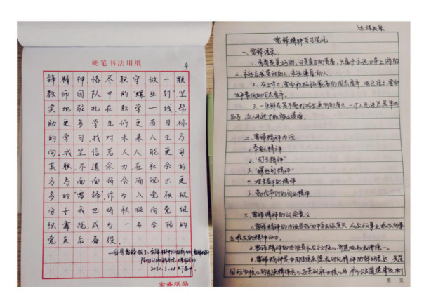 活动结束后共收到自学雷锋报告、雷锋精神,做好新时代雷锋精神研究笔记照片12张、征文10篇、教师职业理想、职业精神和职业道德以及如何将爱国主义教育融入到课堂讨论发言稿12件、绘画和书法作品共2件、心得体会2篇,以下是活动中的部分图片展示: