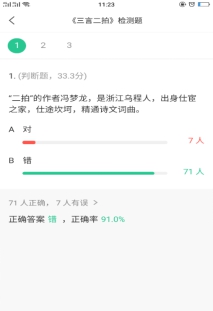 适当插入小测验和问卷等环节,能够帮助学生更好的梳理相关知识点,同平台的饼状图分析能够使教师及时把握学生的学习情况,对重点、易错知识点进行讲解,使学生印象深刻、加深记忆。
