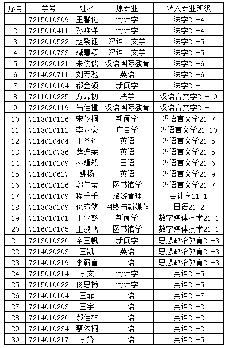 关于王馨健等30名同学转专业的公示-国产一区二区日本在线